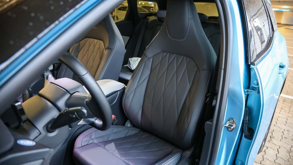 - Die Konsequenz: Mit 445 Litern Ladevolumen ist der Kofferraum zwar alltagstauglich, aber deutlich kleiner als der des VW ID.4 (543 Liter) oder des Skoda Enyaq (585 Liter). Auf einen vorderen Kofferraum („Frunk“) wurde ebenfalls verzichtet.